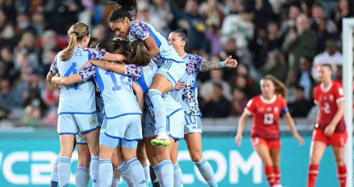 নারী বিশ্বকাপের রাউন্ড অব সিক্সটিনের প্রথম ম্যাচে স্পেনের কাছে পাত্তাই পেল না সুইজারল্যান্ড। সুইসদের ৫-১ গোলে উড়িয়ে দিয়ে প্রথমবারের মতো বিশ্বকাপের কোয়ার্টার ফাইনাল নিশ্চিত করল স্প্যানিশরা।